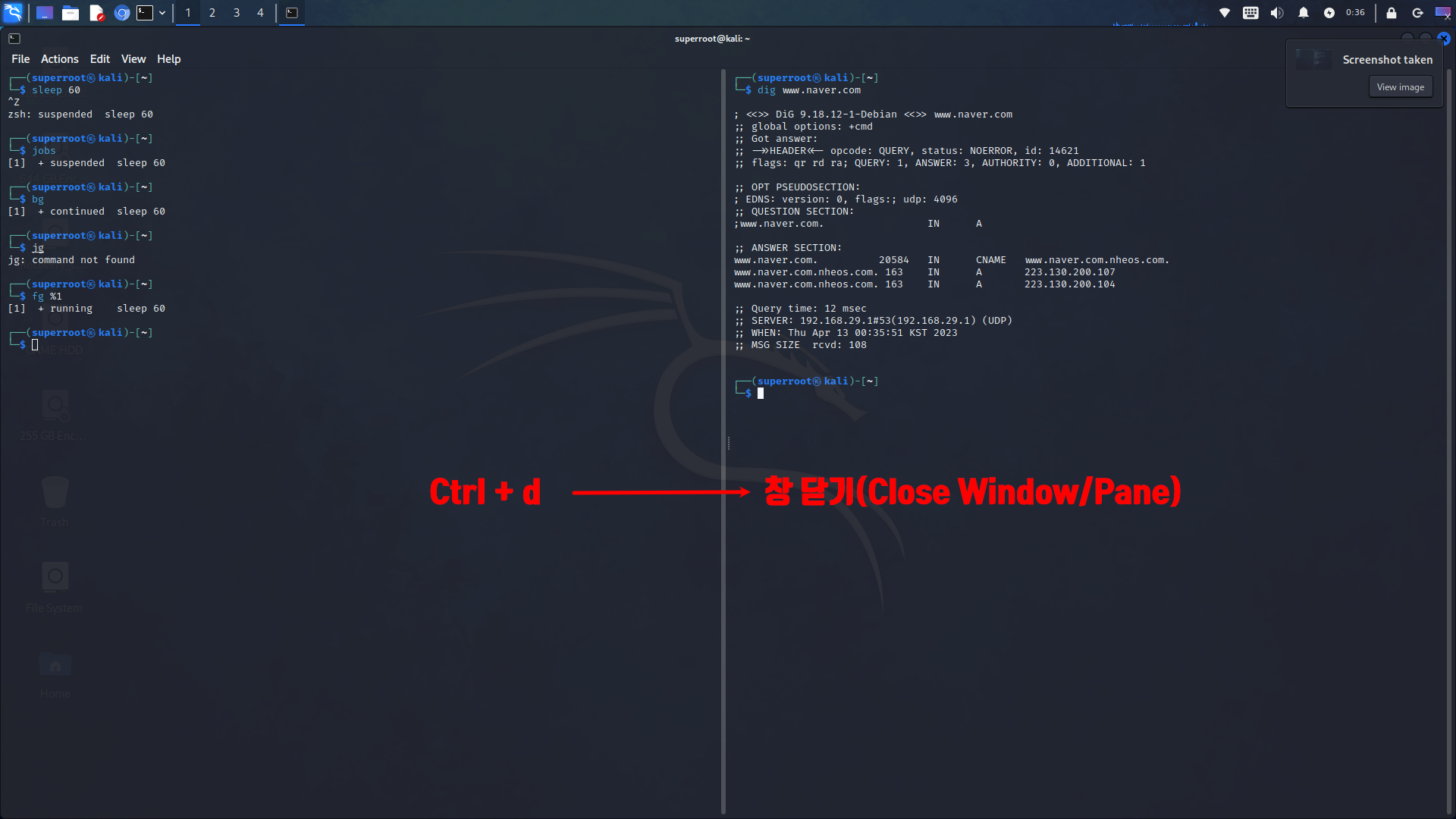 이런 작업이 불편한 경우, Kali Linux의 Qterminal(기본 터미널)을 사용하시면 더욱 편리하게 멀티태스킹을 할 수 있습니다.