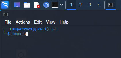 Kali Linux의 Qterminal 보다 사용법이 조금 까다롭지만 터미널이 갑자기 종료되어도 기존의 프로세스를 다시 그대로 사용할 수 있는 강점이 있는 프로그램이 있습니다. 바로 tmux.