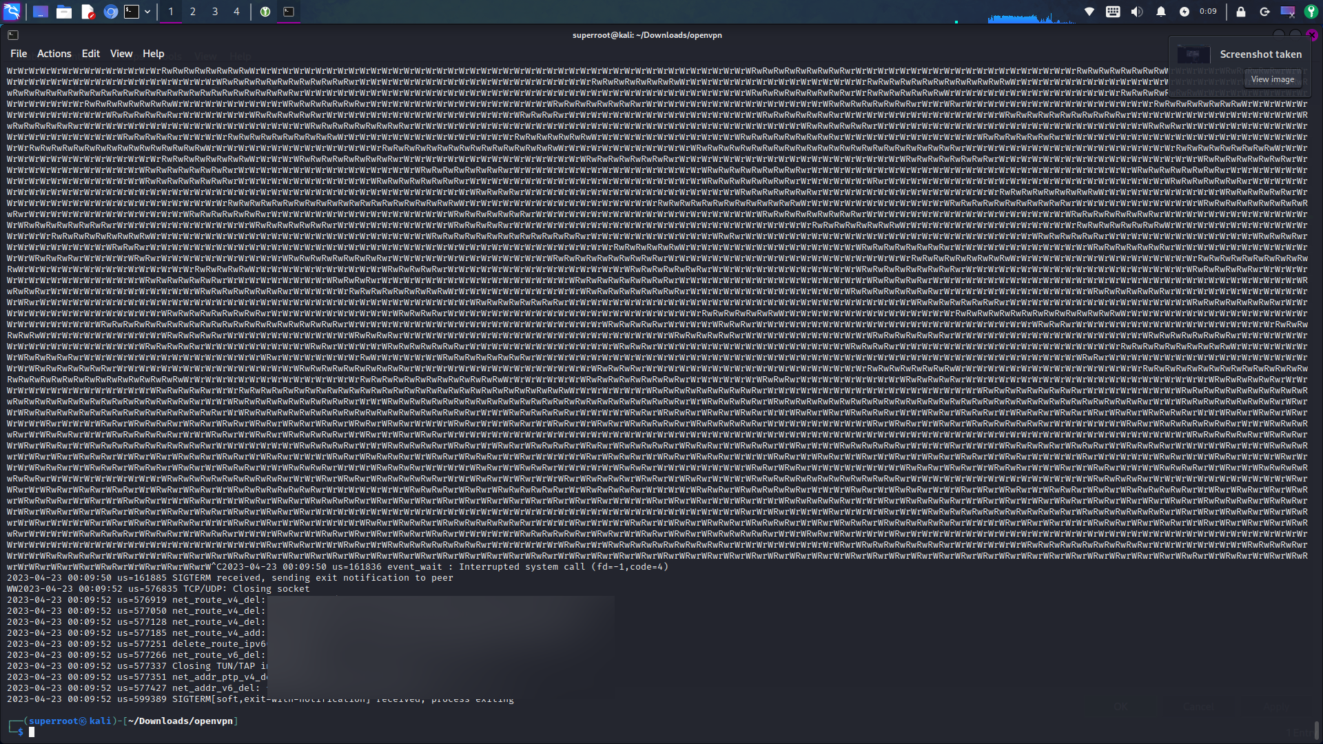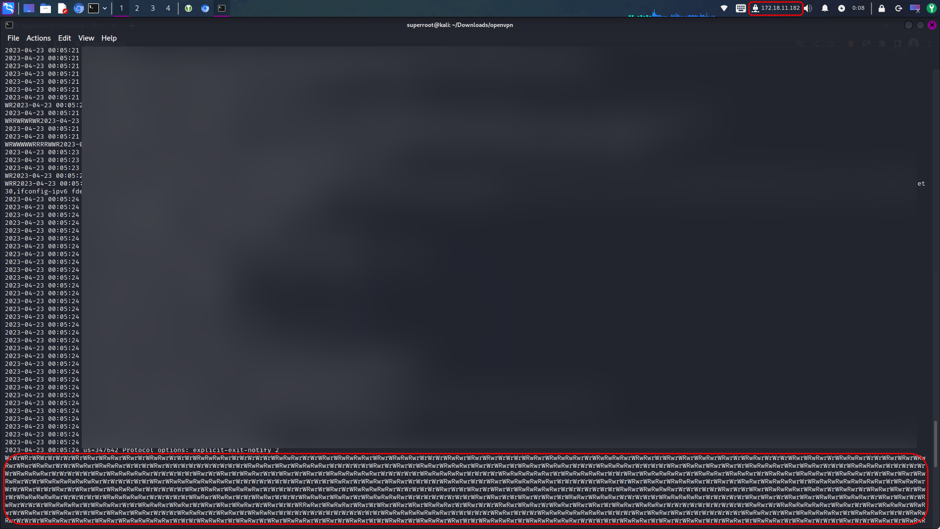 아래 이미지처럼 불규칙한 문자열이 화면에 계속 나오는 경우 정상적으로 VPN 서버에 연결된 상태입니다. 이제부터 정상적으로 VPN을 사용할 수 있습니다.