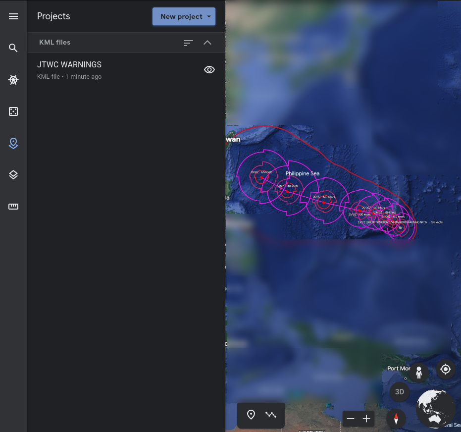 태풍 경로 Google Earth Overlay (Typhoon track on Google Earth Overlay/Feat. Typhoon Mawar)