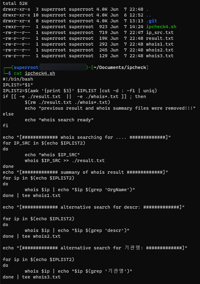 IP 확인을 위한 Shell script 실행 (shell script for whois)