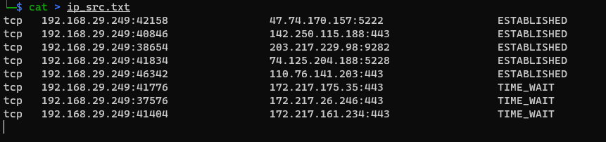 리눅스 터미널에서 적당한 디렉터리로 이동하시고 cat > ip_src.txt 를 입력하고 enter를 누릅니다.