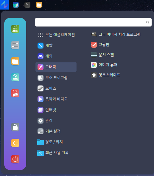 그래픽 메뉴에는 Gimp, Inkscape 프로그램이 있어서 사진 편집 및 벡터 이미지까지 편집이 가능합니다.