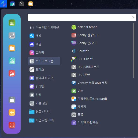 보조 프로그램 역시 알차게 구성되어 있습니다. balenaEtcher, Ventoy 프로그램이 기본적으로 설치되어 있습니다. 이거 2개만 있으면 iso 이미지로 boot USB다 생성할 수 있습니다. 그리고 SSH Client 프로그램 역시 인터페이스가 너무 이뻐요.