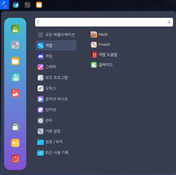 개발관련 Meld, Poedit, 글레이드 프로그램이 기본적으로 설치되어 있습니다.