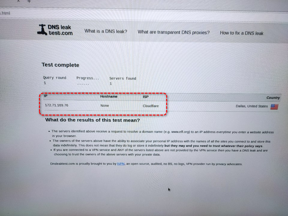 브라우저가 실행되면 dnsleaktest를 먼저 해 주세요. 해당 사이트에 접속하면 변경된 IP를 확인할 수 있습니다. standard test 버튼을 눌러서 ISP에 KT, SKT가 아닌 전혀 다른 ISP가 나온다면 정상입니다.