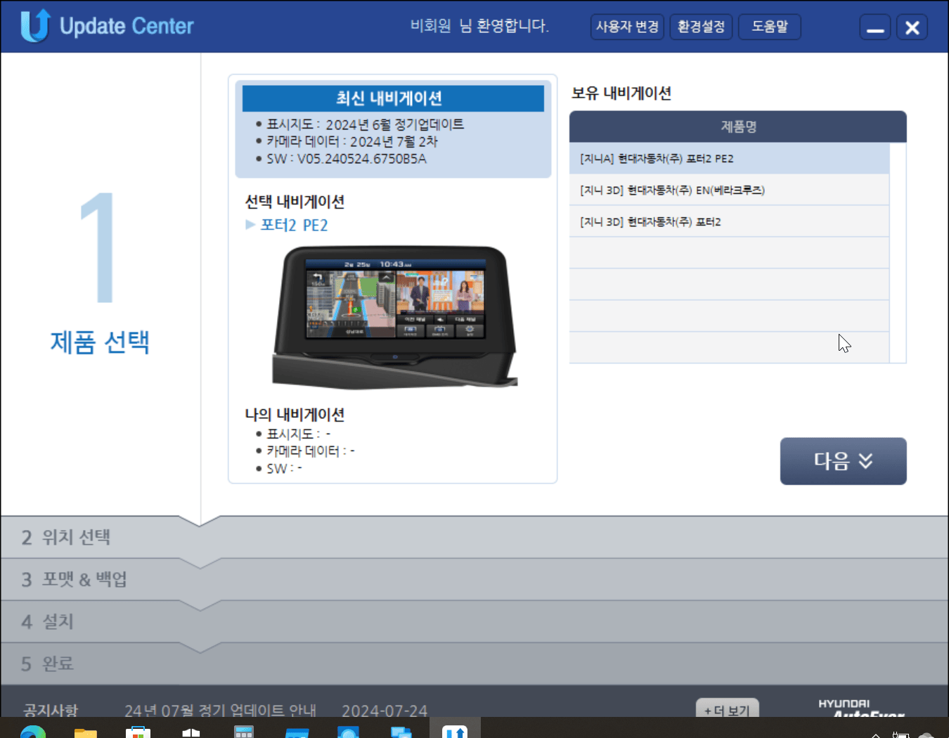 포터 2 내비게이션의 업그레이드를 위해 현대자동차 홈페이지에 있는 내비게이션 업그레이드 프로그램을 설치하였지만 해당 프로그램에서는 포터 2에 대한 메뉴를 찾을 수 없었습니다. 알고 보니 포터 2 내비게이션 업그레이드를 위해서는 다른 사이트에서 별도의 프로그램을 설치해야 가능했습니다.