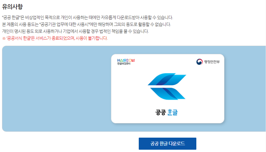 간혹 공공기관 홈페이지에 서류를 제출할 때 hwp 문서 형식으로 서류 제출을 요구하는 경우가 있습니다. 이런 경우에는 공공한글 프로그램을 다운받아 설치하여 hwp 문서로 제출할 수 있습니다. 주의하실 사항은 "공공기관 업무에 대한 사용 시"에만 무료로 사용할 수 있다는 점입니다. 개인적인 용도로 사용하면 법적 책임을 물을 수 있기 때문에 주의하여 사용하시면 될 것입니다.