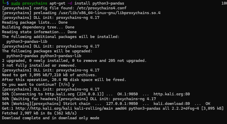 누락된 패키지 이름을 복사하고 sudo proxychains4 apt-get -d install 패키지 이름을 붙여넣기하여 다운로드합니다.
