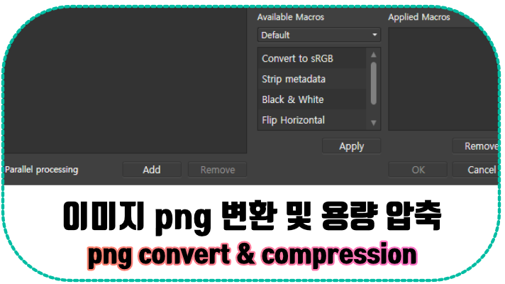 블로그를 운영하다 보면 많은 이미지를 jpg 포맷에서 png로 변환하거나, 기존의 사이즈를 모두 resize, 압축해야 하는 경우가 종종 발생합니다. 제 경우 이미지 편집은 유료 프로그램인 Affinity Photo를 사용하지만 제가 원하는 png compression은 이 프로그램에서 제공하는 batch job 기능에 없습니다.