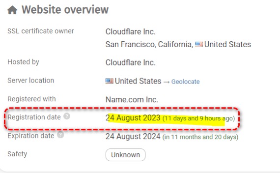 사기 쇼핑몰의 특징으로 Registration date가 1주일 ~ 1달 내외로 아주 짧습니다. 이렇게 신생 쇼핑몰에서 제품을 구매하는 것은 다른 사람이 가보지 않은 길을 먼저 개척하는 일이기 때문에 위험도가 매우 높습니다.