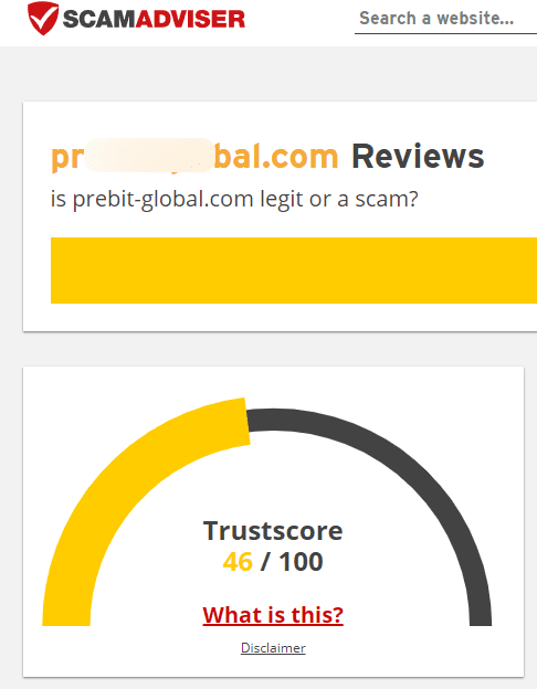 ScamAdviser 사이트에서 조회한 결과입니다. Trustscore가 낮은 경우 또는 결과 자체가 없는 경우는 해당 사이트를 피하는 것이 좋습니다.