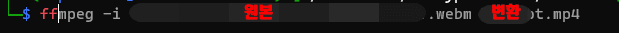 ffmpeg -i 옵션 뒤에 원본 동영상 파일의 이름, 그리고 마지막에 저장하려는 파일 이름 및 포맷을 지정해 주시면 됩니다.