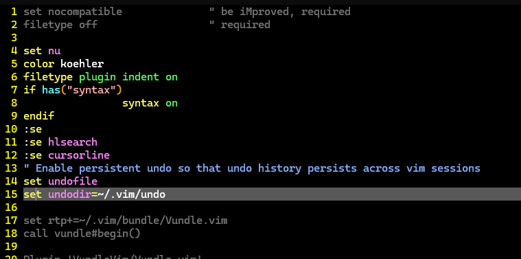 mundo라는 undo의 history를 확인하고 예전 변경 내역으로 되돌릴 수 있는 기능을 사용하기 위해 ./vim/undo라는 폴더를 생성합니다.