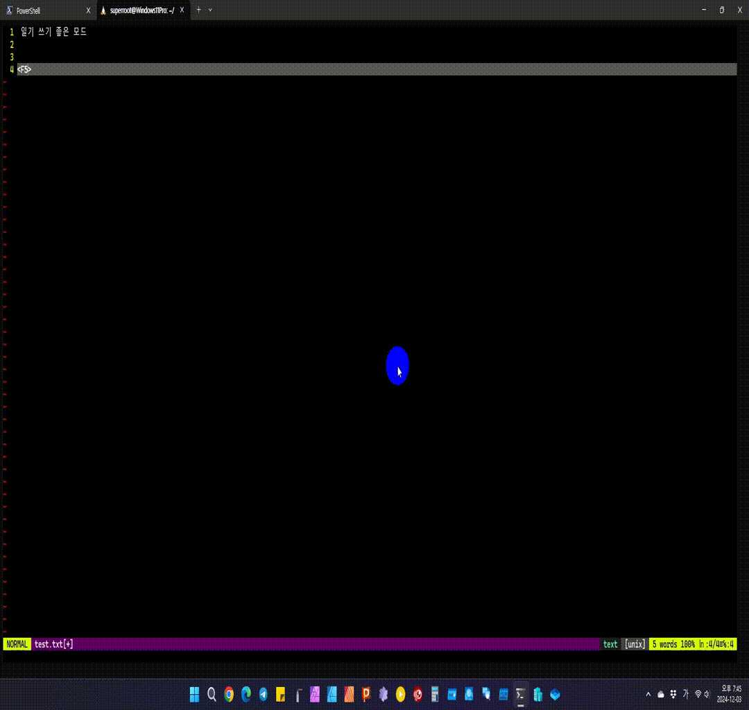 vi editor 창 아래쪽에 airline이 생성됩니다. 이쁘죠.