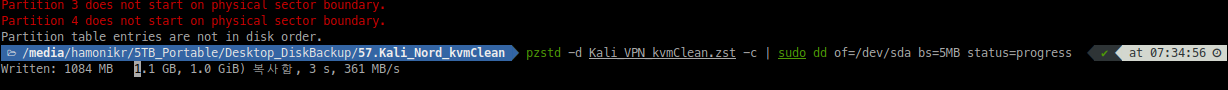 시스템 백업을 위해 sudo dd if=/dev/sda bs=5MB status=progress | pzstd ./저장파일명.zst