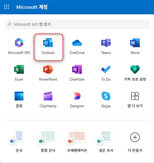 그리고 Microsoft 계정(https://login.live.com)에 접속하여 Outlook으로 들어갑니다.