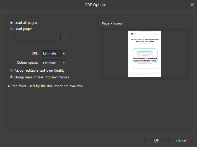 [File] - [open] 메뉴를 사용하여 pdf 문서를 불러오기 합니다. 모든 pages가 각각 불러오기 됩니다.