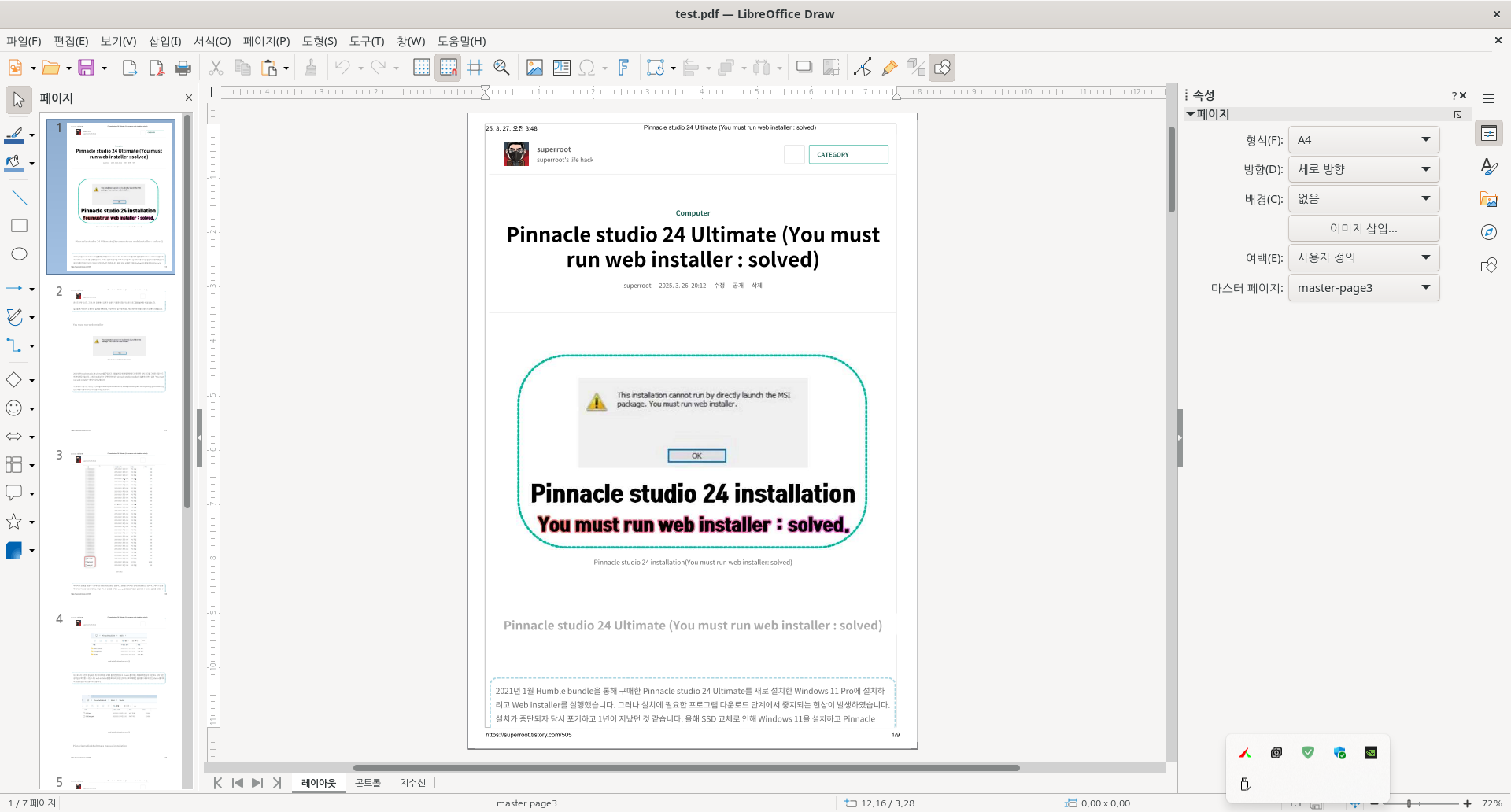Libreoffice는 무료 프로그램입니다. 이 프로그램에는 Draw라는 프로그램이 있는데 pdf도 편집이 가능합니다.