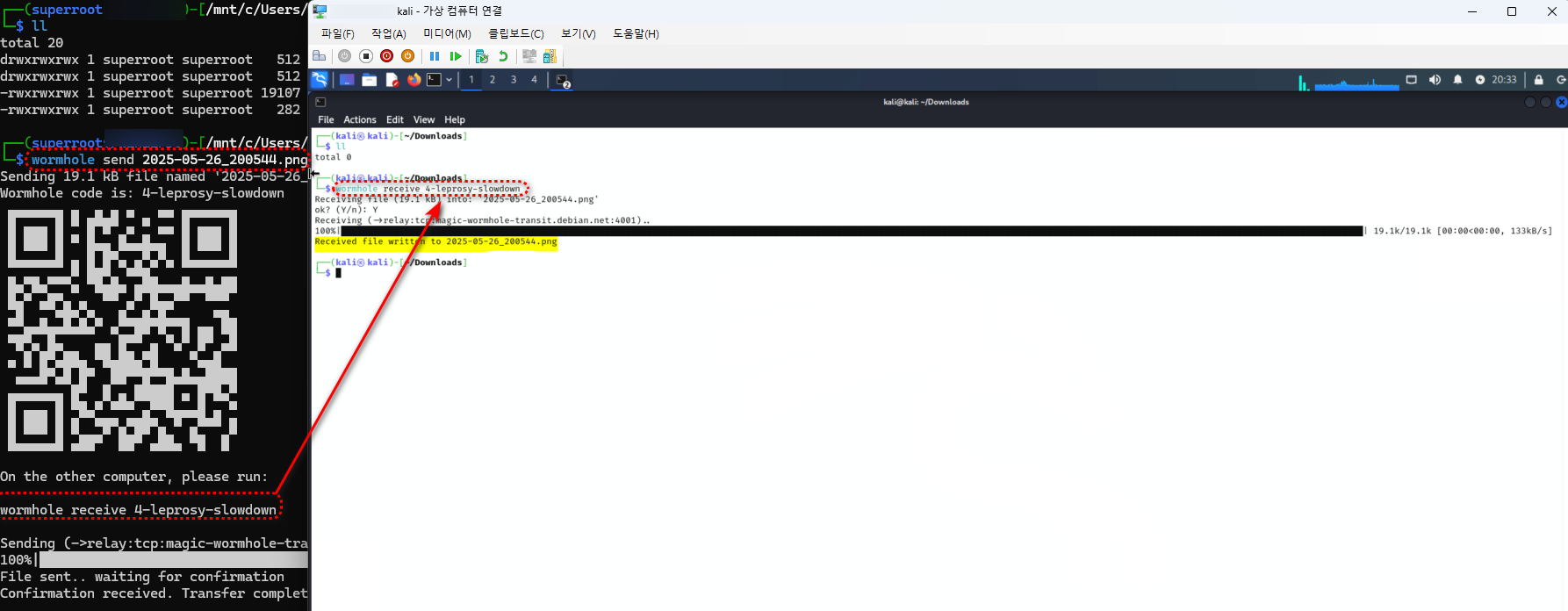 컴퓨터 간 파일 전송 방법 소개 / 가상머신 파일 전송 [Magic-Wormhole]
