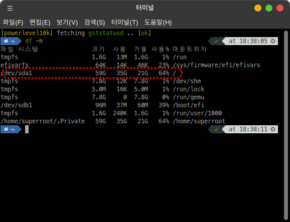 약 4기가 정도의 여유 공간만 남아있던 Host computer의 용량이 21GB까지 늘어났습니다. 가상머신 사용하면서 Host PC의 여유 공간이 부족해지는 경우 이렇게 명령어를 사용하여 가상머신 디스크 용량을 최소화시켜보세요.