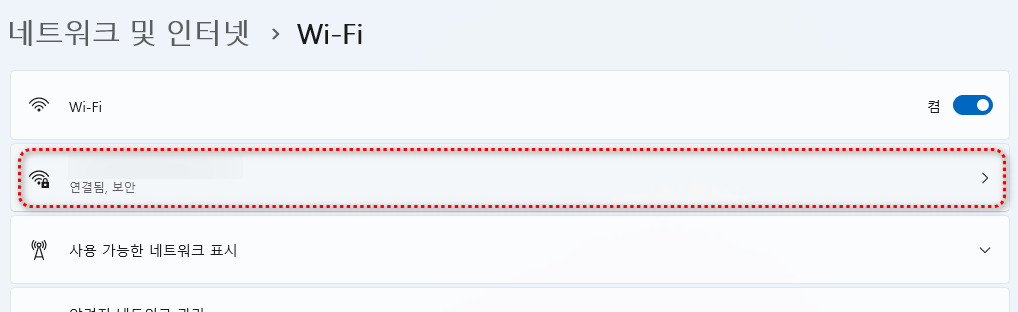 자신이 사용하고 있는 Wi-Fi(연결됨) 메뉴를 선택합니다. 유선 연결을 했다면 자신이 사용하고 있는 ethernet 어댑터를 선택하시면 됩니다.