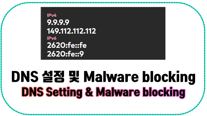 Malware Blocking을 기본으로 제공하는 Quad9 DNS입니다. 기왕이면 다홍치마라고 Malware blocking까지 설정해서 사용하기 좋은 DNS입니다. Malware blocking 관련하여 평판이 좋은 DNS 서버입니다.