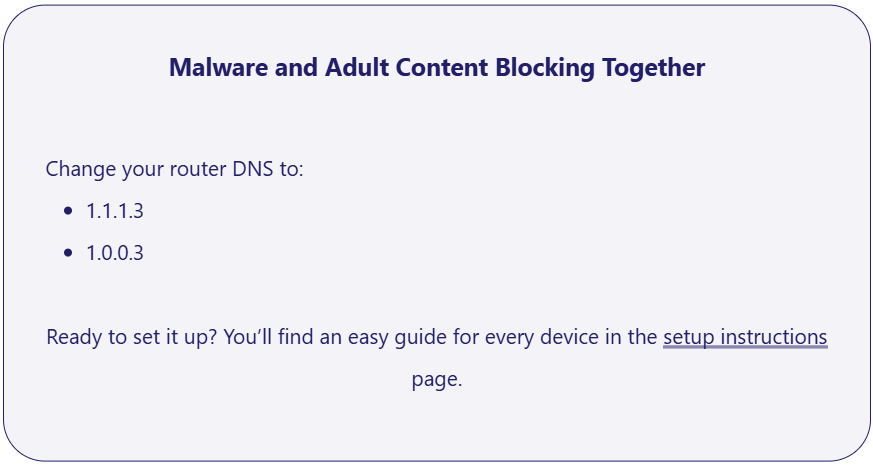 가정에 자녀들이 있다면 성인 컨텐츠를 자동으로 차단해 줄 수 있는 1.1.1.3, 1.0.0.3 DNS를 설정하여 사용하는 것도 좋습니다.