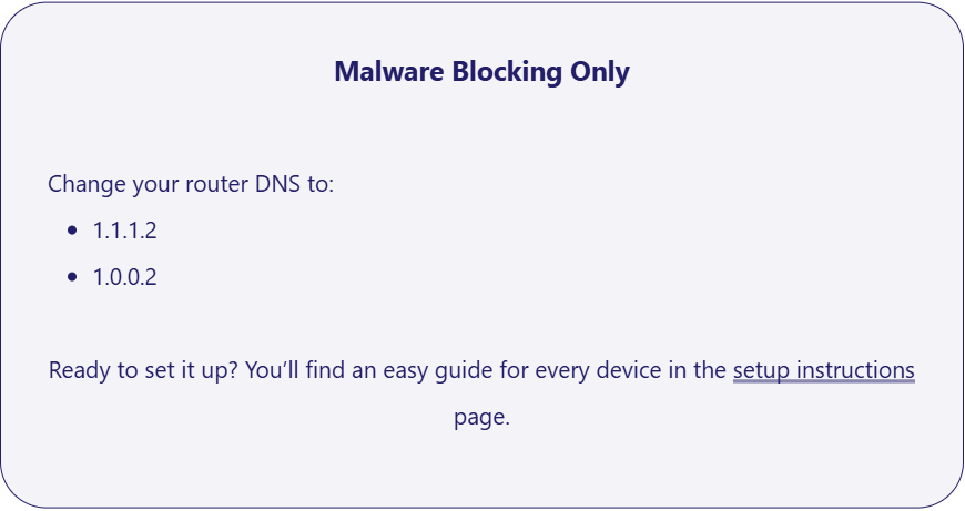 Cloudflare에서도 Malware Blocking을 지원하는 DNS 서버가 있습니다. 1.1.1.2, 1.0.0.2로 설정하시면 됩니다.
