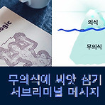 서브리미널 메시지(Subliminal Message)무의식에 원하는 정보를 심어 영향을 끼치는 것. 30대 무렵, 연애가 힘들었던 나는 심리학이 연애에 도움이 된다는 이야기를 접하고픽업아티스트들이 사용하는 심리학 기술에 푹 빠져버리게 되었습니다.바디랭귀지, Cold Reading, 그리고 NLP…...관련 자료를 수집하고 열독하며 오랜 시간이 지났네요. 연애뿐만 아닌, 승진시험 PPT에서도 이러한 기술은 정확히 적중했으며 깐깐했던 이사님까지도 TV 드라마에서 보던 그런 멋진 PPT였다고 감탄과 칭찬을 해 주시더군요. 심리학과 NLP 책의 시작 부분에 이런 말이 적혀 있었습니다. 뇌는 현실과 상상을 구별하지 못한다. (뇌는 착각 덩어리) 인간의 정신은 의식과 무의식으로 구분되며, 바닷속에 가려진 빙산의 일..
