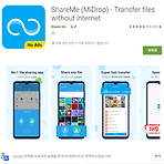 모바일 데이터 및 Wireless 모뎀 없는 상황에서 Android phone에서 iOS 기기로 파일 및 동영상을 쉽게 전송하는 방법에 대해서 간략하게 설명드리려 합니다. 휴대전화에는 ShareMe(MiDrop) 프로그램을 설치하고, 해당 프로그램에서 iOS로 전송을 합니다. ShareMe에서 "웹쉐어"를 선택합니다. 휴대전화의 "모바일" 및 "Wifi"는 잠시 꺼주세요. 공유를 누르면 "핫스팟"이 활성화 됩니다. 1단계에 나오는 비밀번호를 사용하여, iOS 기기에서 Android 폰의 핫스팟에 연결을 합니다.2단계에 나오는 192.168.43.1:7007 주소를 iOS Documents by Readdle 앱에서 "Browser" 메뉴로 들어가 주소창에 입력해 줍니다. Chrome 또는 Safari에서..
